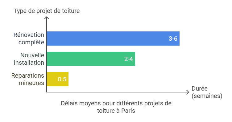 La qualité des matériaux influe directement sur la durée des travaux. Pour en savoir plus, consultez notre guide sur le choix de matériaux de toiture à Paris.